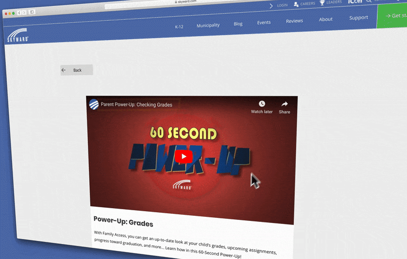 Check out our Family Access Toolkit and get started embedding these videos on your district's website! Thinking about edtech for your district? We'd love to help. Visit skyward.com/get-started to learn more.