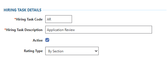 Grading an entire application can be challenging, as many factors determine whether an applicant is the best fit. Providing an application score was becoming more of a gut check than a valid score. That’s why we've expanded scoring into individual sections and application questions, so you can easily identify who is excelling in different areas.When setting up Hiring Tasks, you'll see a new option added to Rating Types. Select By Section to grade at a more granular level, shifting scoring away from an entire application to detailed application sections.